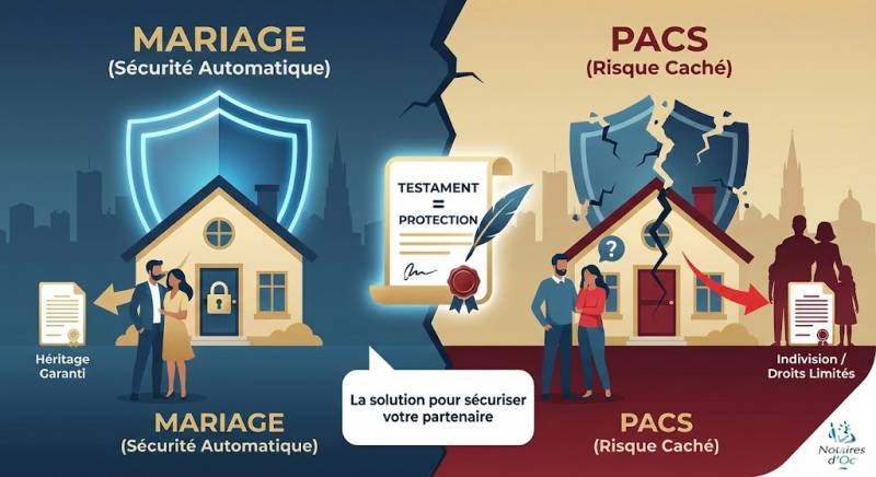 C’est l’erreur numéro 1 constatée à l’étude. Contrairement au mariage, le PACS ne donne aucun droit de succession automatique.